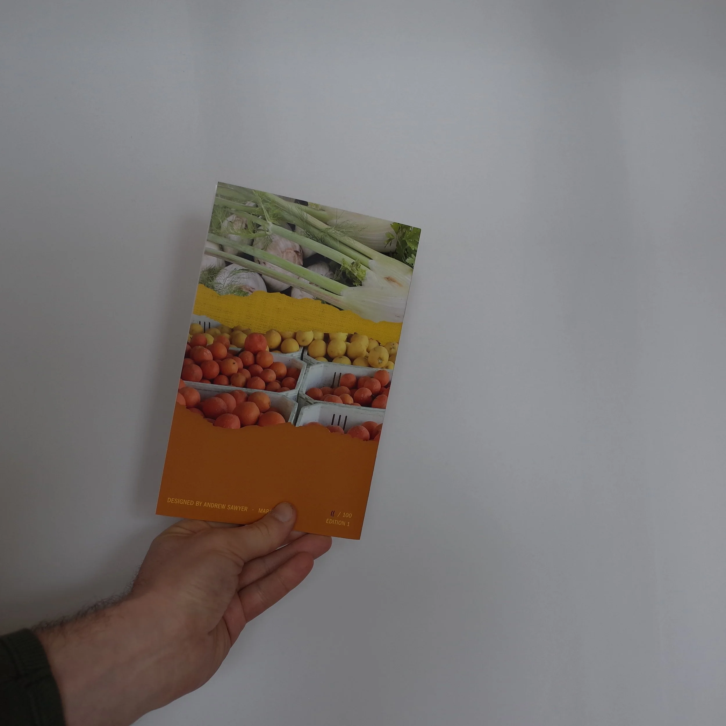 For this series of short cookbooks, Andrew modified all of the recipes, designed the layout of the book, illustrated the ingredients, and took all of the photographs for the cover. Each book in the cookbook series (this is Menu 1) has a theme and is printed in editions of 100 and hand numbered.