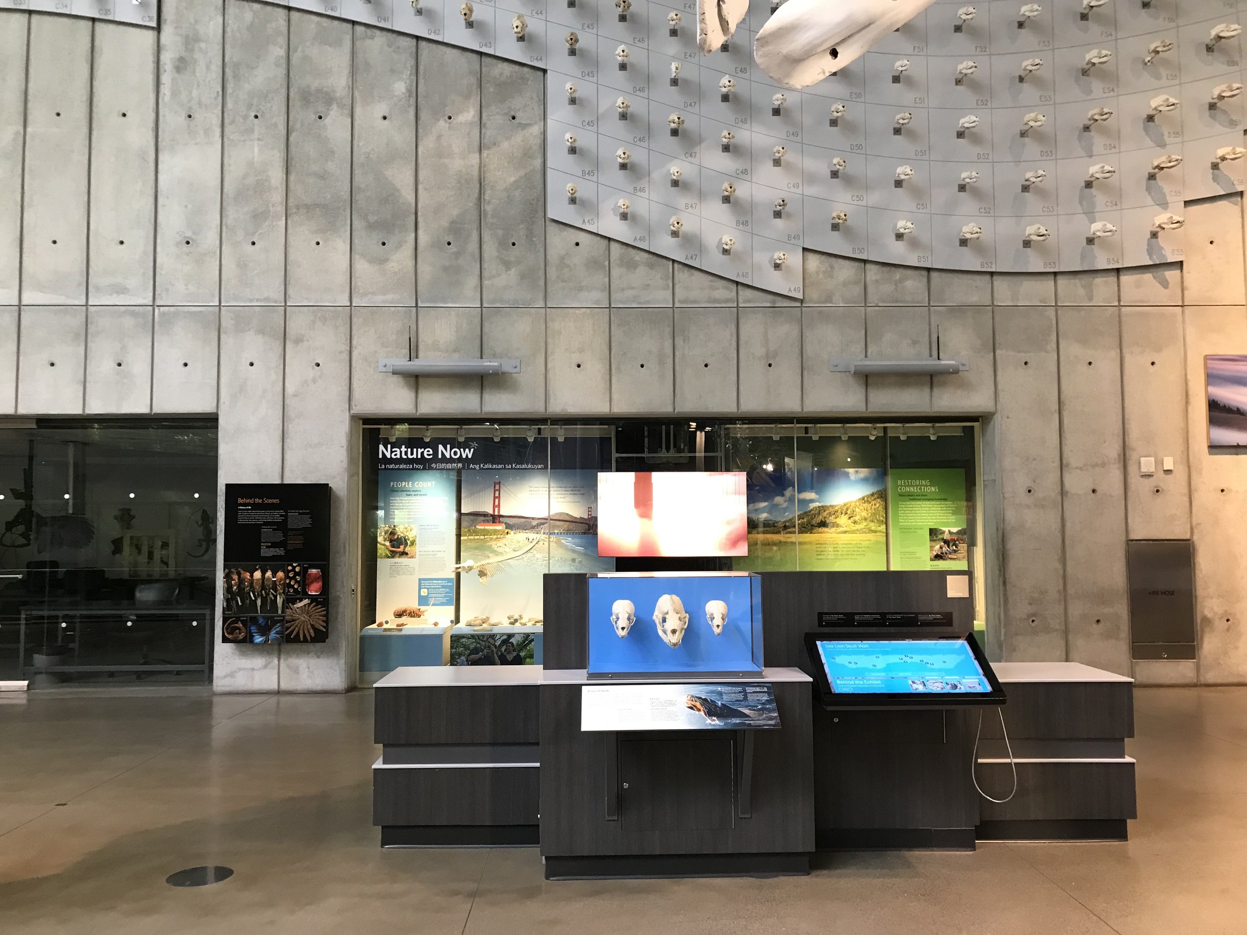 Touchscreen to learn more about a huge wall-mounted installation of skulls. Visitors can explore images, 3D models, and collection information about key specimens mounted on the wall. Secondary content is a series of videos about conservation.